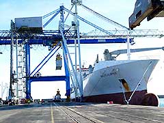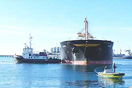 Le 13 à 15h00, je ne veut surtout pas manquer l'entrée du vraquier handysize AFRICAN MAGNOLIA. Un beau navire avec une étrave verticale qui arrive d'Oust-Louga en Russie, dans l'oblast de Leningrad. À Oust-Louga, il n'y avait jusqu'en 1997 qu'un village de 2 000 âmes et une gare de chemin de fer. Depuis, un important port commercial a été construit et inauguré par Vladimir Poutine en 2001. Par ce port moderne, construit à l'embouchure de la rivière Louga, sur la baie du même nom, transitent du charbon et des engrais avec tout de même un volume qui dépasse les 30 millions de tonnes par an. |