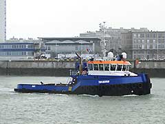 A 12h50, j'ai failli manquer la sortie du caboteur PILSUM qui est venu de Truro, un port anglais des Cornouailles pour décharger 1 600 tonnes de ferrailles. Apparemment, ses cales ne sont pas vides lorsqu'il prend la mer. Le franchissement de la barre est nettement plus confortable que la semaine dernière. |