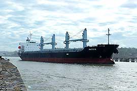 Le caboteur chypriote MARJATTA va immédiatement prendre sa place au quai Armand Gomez de la zone Blancpignon pour décharger 3 000 tonnes de potasse qui viennent de Gand en Belgique.