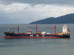IMO 9336165 – porte-conteneurs – 208,93x29,85x16,40 m – TE 11,90 m – JB 26 435 – JN 12 990 – PL 35 951 t – Cap. 2 543 teu dont 536 reefers – V 22 nds – P 21 660 kW (Man B&W 6K80ME-C) – Constr. 2006 (Jiangsu Yangzijiang Shipbuilding - Chine) – Gérant/Opér. MSC (Suisse) – Pav. LBR – Ex HAMMONIA PALATIUM (2015-2022), EMIRATES ZAMBEZI (2011-2015), MOL STABILITY (2009-2011), HAMMONIA PALATIUM (2009), CCNI NINGBO (2007-2009), HAMMONIA PALATIUM (2006-2007) – Sister-ships 13 |