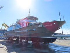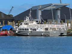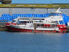 IMO 9722819 – Navire à grande vitesse – 85,20x26,20x7,35 m – TE 3,40 m – JB 5 537 – JN 1 662 - TPL 450 t– Cap. 675 pax , 98 voitures, 7 camions - P 4 x 5650 kW (4 mot. Caterpillar C280-16) – V. 37 nds - Const. 2015 par Incat (Tasmanie) – Gérant/Opér. DFDS – Pav. GBR - Ex AKANE (2015 > 2021) |