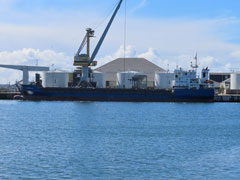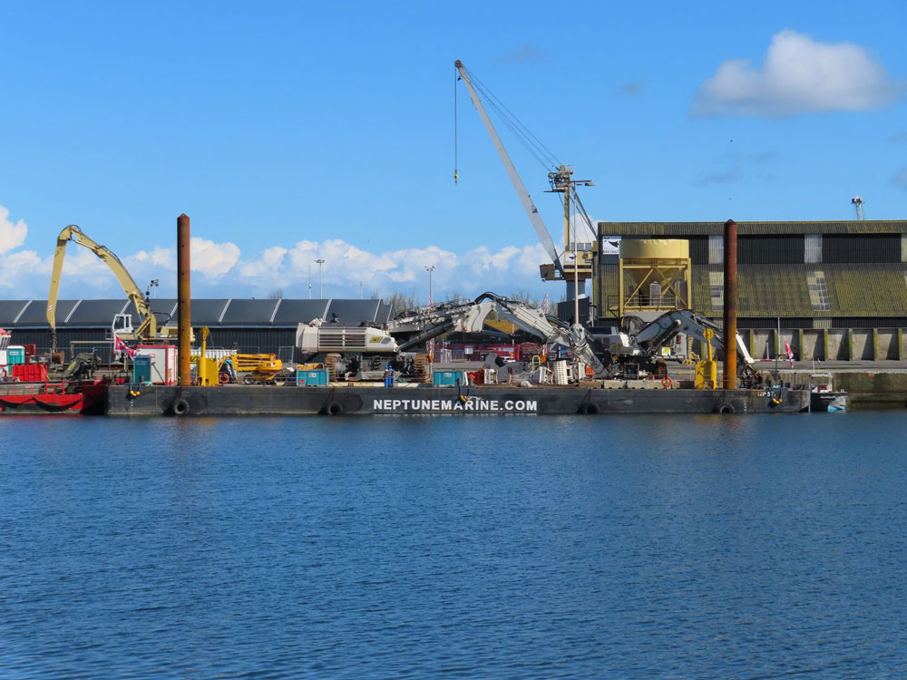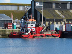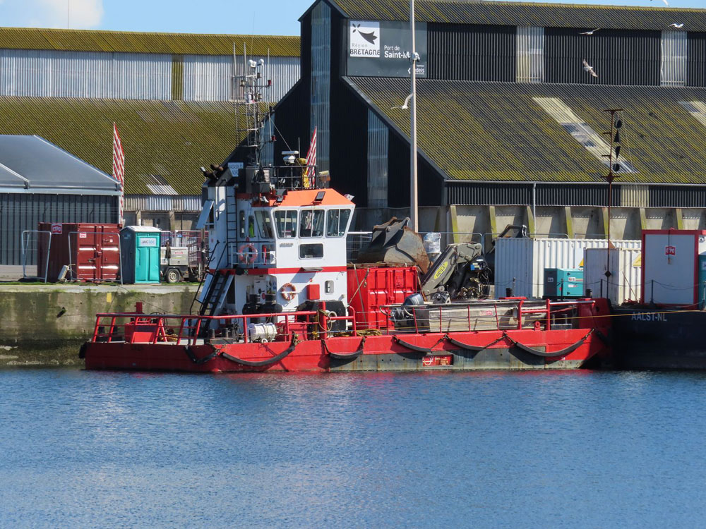 | Enfin, le navire de travaux SUROÎT travaille avec la barge NP577 au dragage du port. |