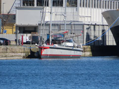 Au détour du bassin Duguay-Trouin, le cargo à voiles GRAIN DE SAIL est en attente d’un prochain affrètement. A l’automne dernier, il avait été affrété par l’armateur breton Heol Sailing pour assurer du transport de fret entre la France, l’Angleterre et le Portugal. |