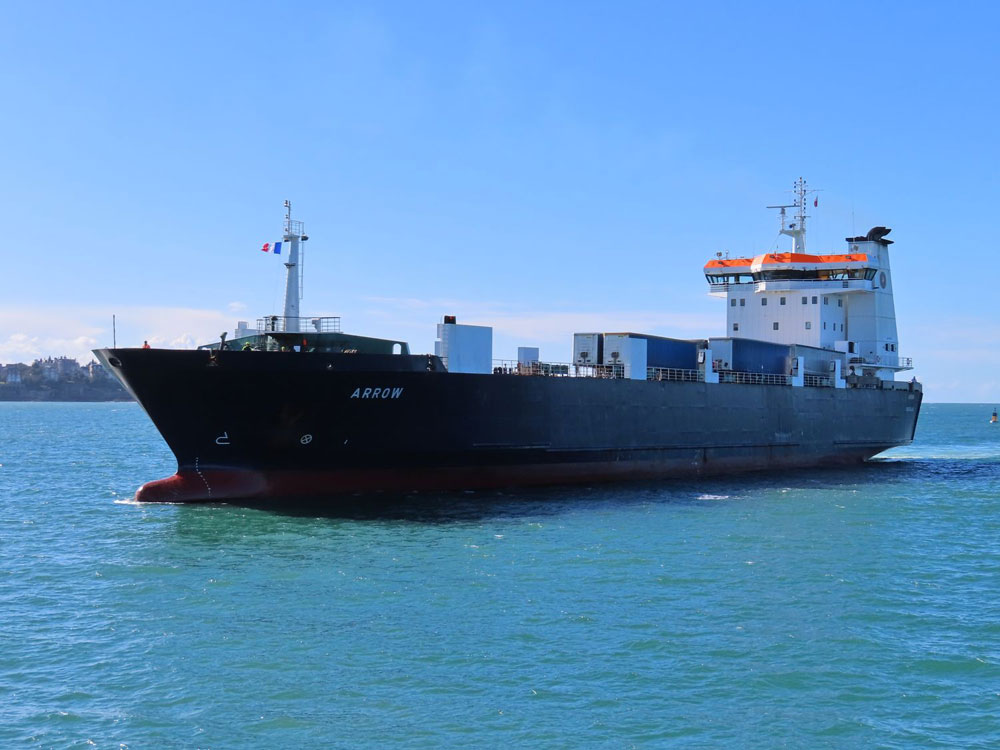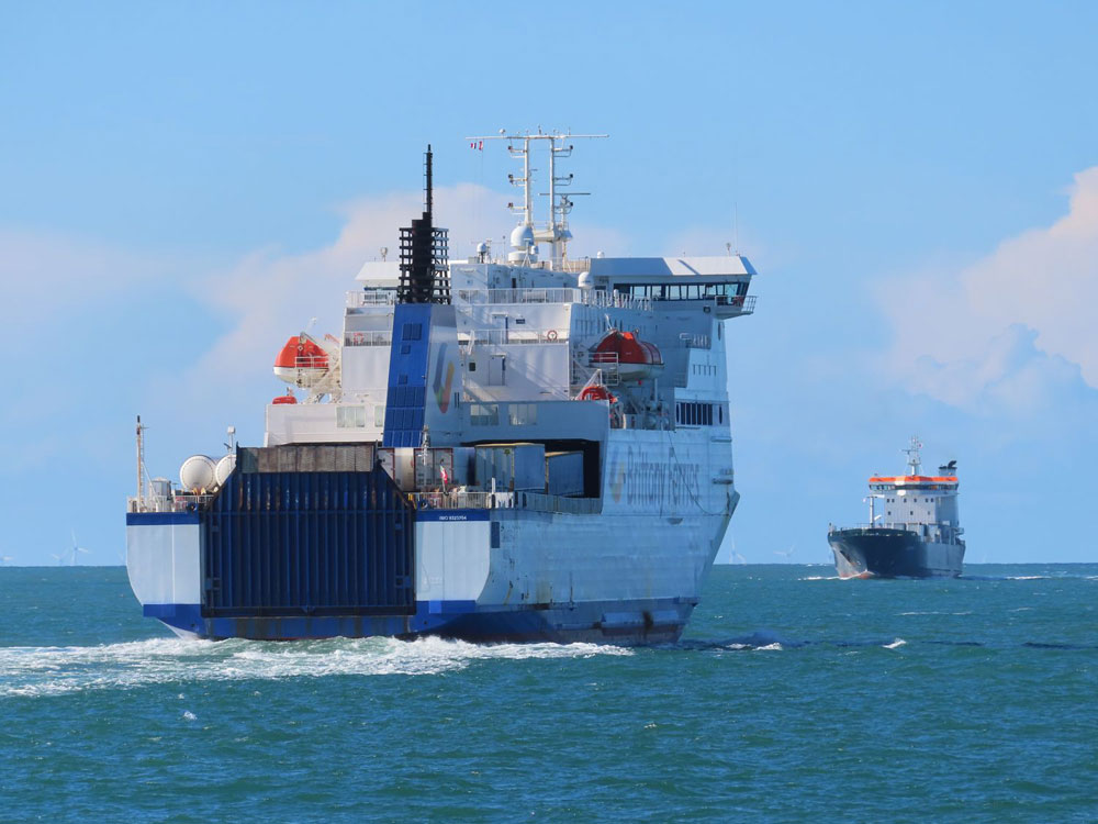IMO 9119414 – roulier – 122,32x19,80x12,90 m – TE 6,214 m – JB 7 606 – JN 2 282 - TPL 5 803 t – Cap. 266 teu dont 50 reefers, 12 pax et 70 camions (1057 m linéaires) - P 2 x 3700 kW (2 mot. Wärtsilä 9R32) – V. 17 nds - Const. 1998 par Astilleros de Huelva, Espagne – Gérant ISLE OF MAN STEAM PACKET COMPANY / Opér. DFDS – Pav. IOM - Ex VARBOLA (1998-1999) ; DART 6 (1999) ; VARBOLA (1999 >2005) ; RR ARROW (2005 > 2007) - Sister-ships HELLIAR (1997) ; C.T.M.A VOYAGER 2 (1998) ; HILDASAY (1999) |