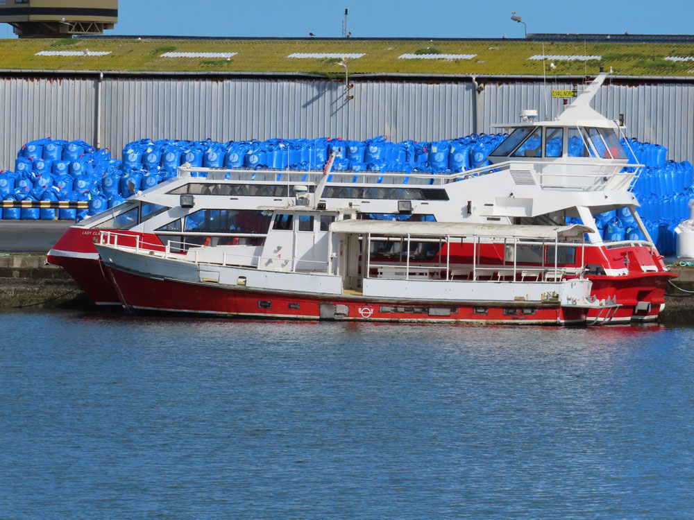 On commence par une balade dans le bassin Bouvet, où les vedettes à passagers des deux armateurs malouins, Compagnie Corsaire et Bateaux Rouges, passent leurs derniers jours de repos avant la reprise de la saison début avril. On notera que QUEEN MARIE PAUL est désarmé depuis 2 ans. Il aurait été racheté par une association du Golfe du Morbihan, sans plus d’informations.